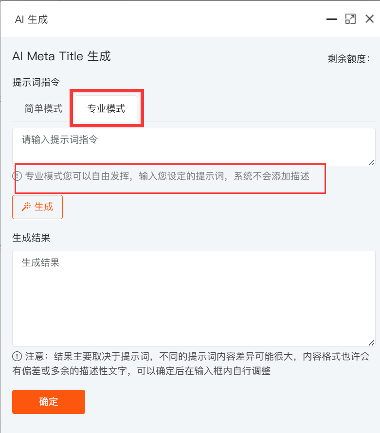 对于有更高要求的商家,插件提供“专业模式”支持,允许用户自定义提示词、语气风格或强调重点,实现更灵活的文案优化。