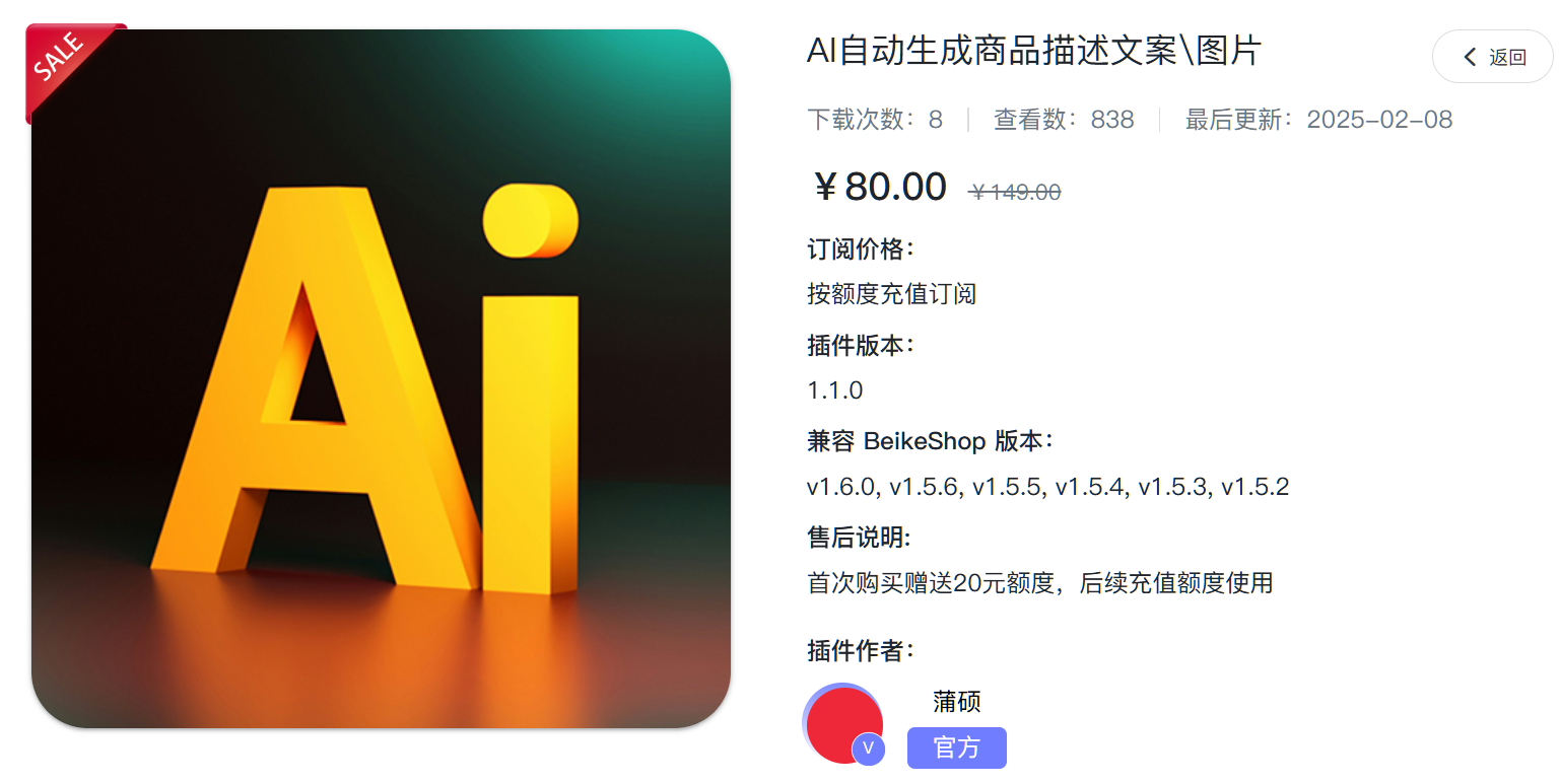 这是一款基于 AI 技术开发的内容生成插件,专为 BeikeShop 独立站系统设计。