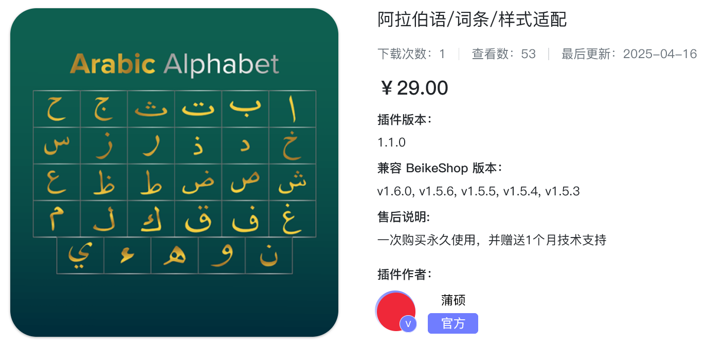我们注意到在持续增长的跨境贸易中,中东和北非地区(MENA)成为越来越多卖家的战略布局重点。 尤其是阿拉伯语国家,人口基数大、互联网普及率高、线上购物需求旺盛。为帮助中国卖家更轻松地进入阿拉伯市场,BeikeShop插件市场正式上线了官方开发的阿拉伯语言包插件。