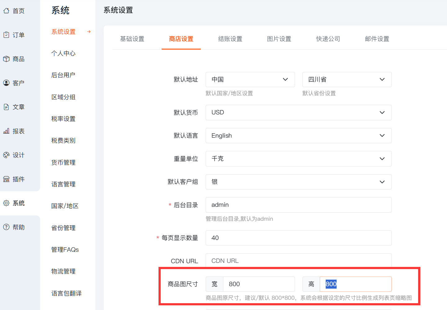 1. 后台可自定义商品默认图尺寸,让展示更专业。